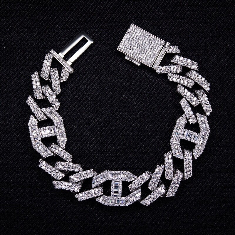 Custom 17mm Baguette Moissanite Diamond Cuban Bracelet 925 Sterling Silver Iced Out Men's Hip Hop Bracelet