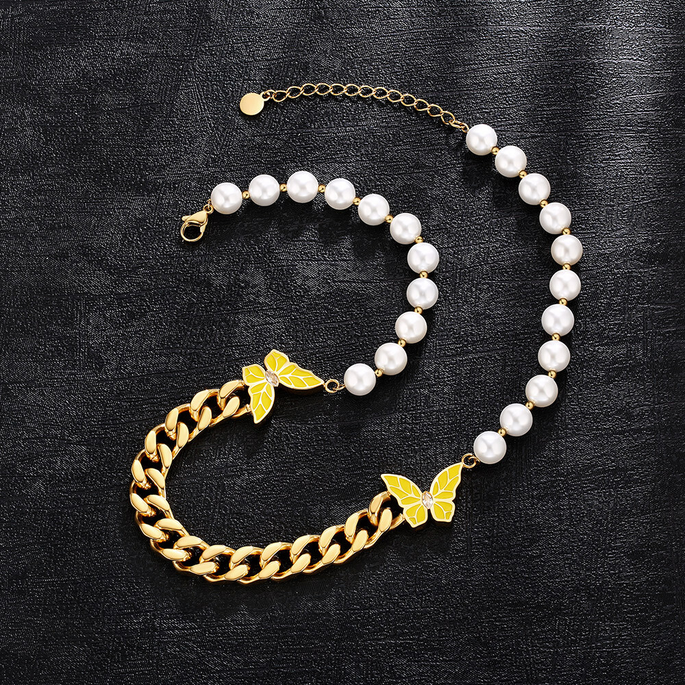Enchanting pearls, stylish chains, and a unique butterfly necklace.
