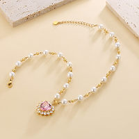 8mm 18in June Birthstone Diamond Pink Spinel Heart Pendant Pearl Necklace for Women