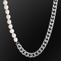 Baroque pearl necklace and half cuban chain, this men's necklace is designed for those fashion icons. It is suitable for men & women, daily and fashion style. Wear it with your Leisure Suit or T-shirt, you will find both styles unique!